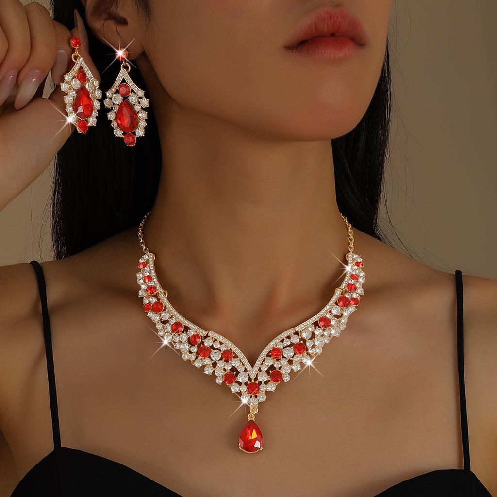 2026 Big Water Drop Jewelry Direct Sales European and American Necklaces Earrings Two-piece Set Flower Bride Retro High-end Design Set
