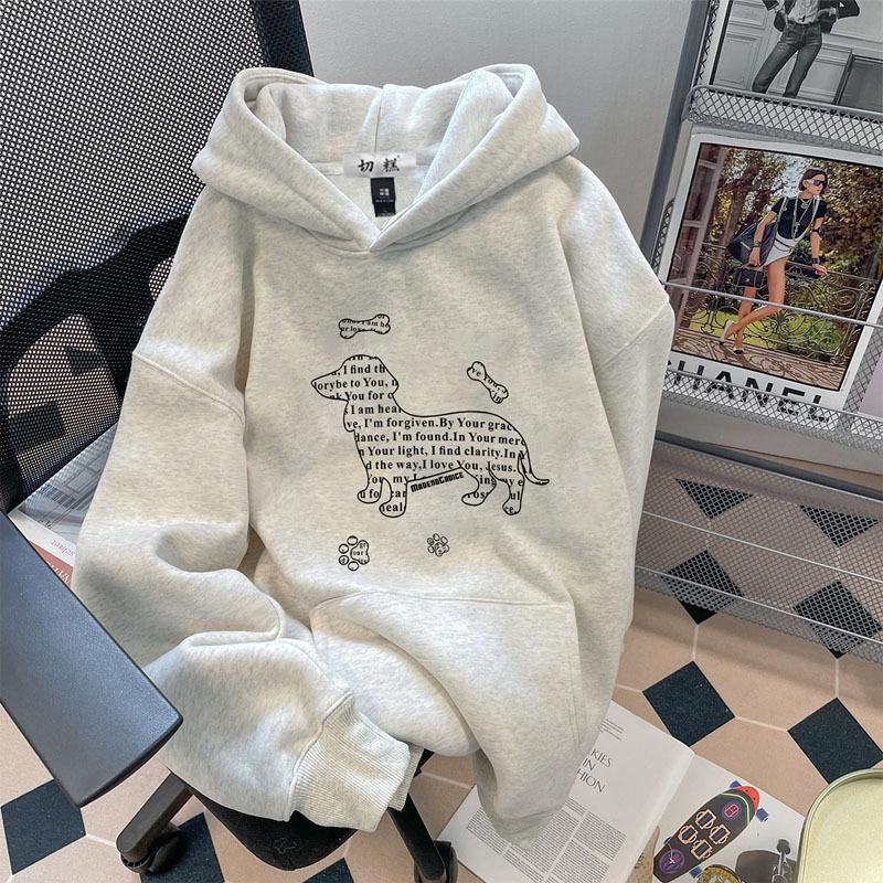 Autumn and Winter Retro Printing Heavy Hooded Sweater Men's Fleece Thickened Ruffian Handsome Loose Versatile Pullover Woman