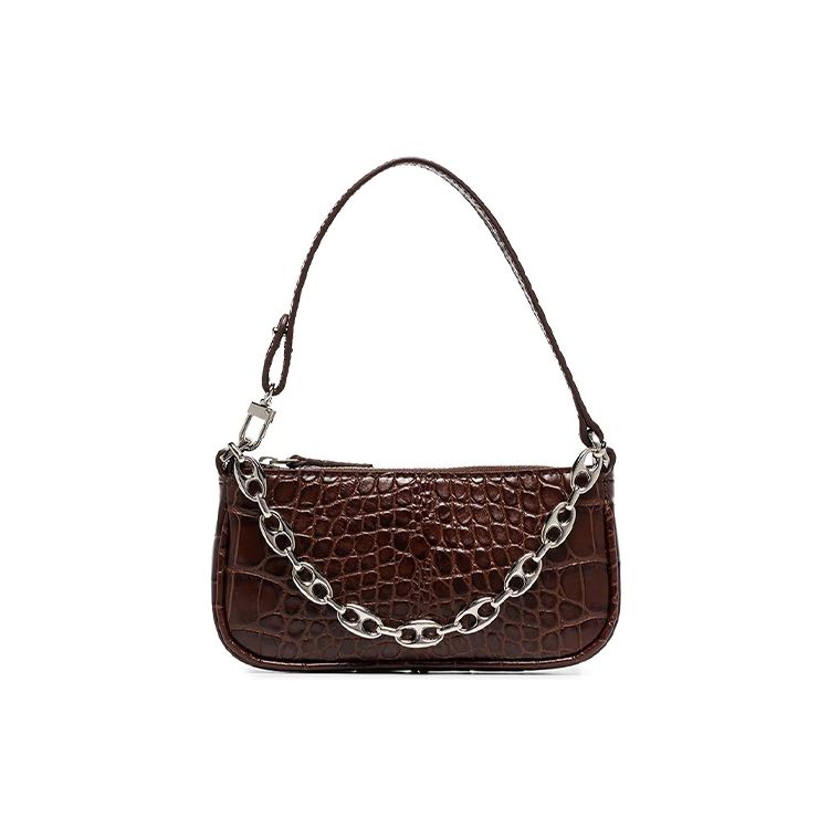 By Far Mini Rachel Series Leather Vintage Crocodile Pattern Chain Baguette Shoulder Bag Women bags Hazelnut 20CRMIRANEDSMA
