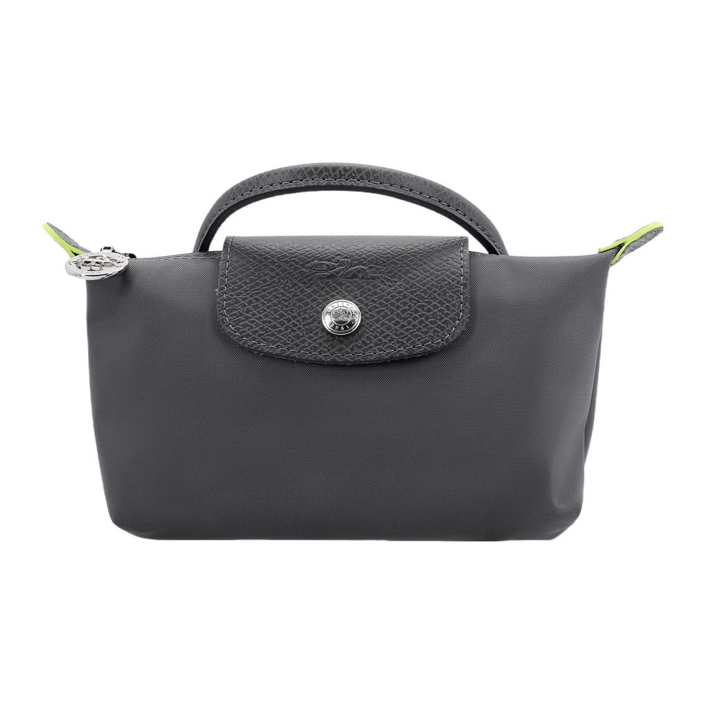 Longchamp Le Pliage Green 17 Solid Color Short Handle Zipper Snap Leather Trim Makeup Bag Tote Women bags Graphite-Gray 34175919P66