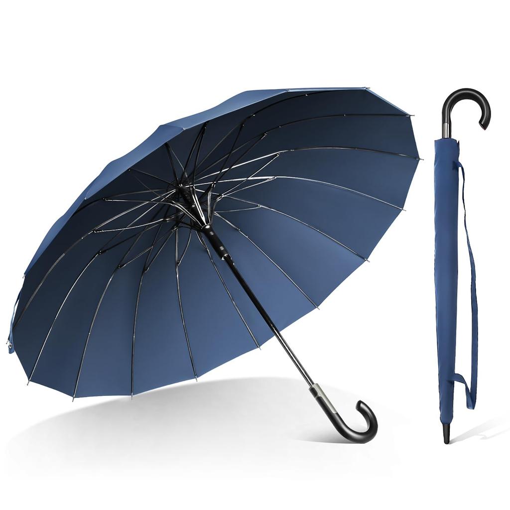 [Durable 16-rib, high-strength windproof umbrella] The 16 ribs are made of lightweight, flexible, and durable fiberglass, creating a beautiful, nearly circular shape that is durable enough to withstand strong winds. It's stable and won't break even when hit by the wind, and even with its many ribs, it's lightweight and easy to carry. Even if it flips over in a strong wind, it deflects the wind and returns to its original position when closed. Perfect for windy, rainy days!