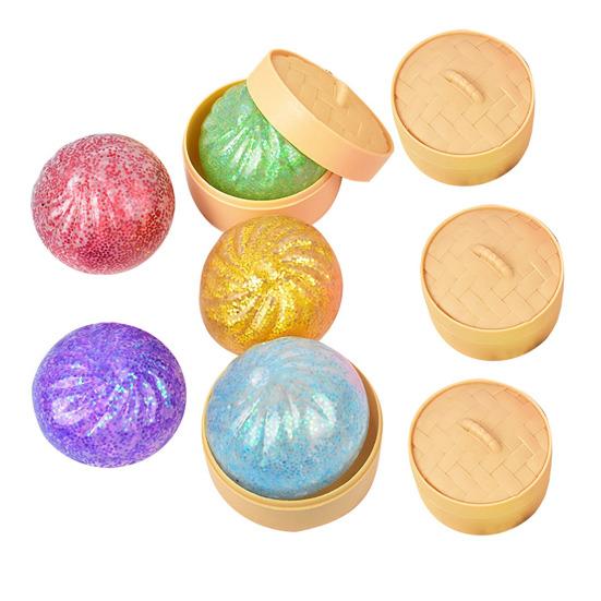 Playful Glitter Bun Shape: Featuring a bright and charming bun-shaped design with embedded glitter, this toy adds a touch of fun and whimsy to any environment. Its visually appealing style makes it a delightful desk accessory or home decoration that sparks joy.