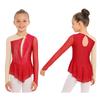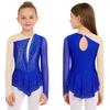 The asymmetrical hem gives the dress a contemporary and fashionable edge, making it suitable for figure skating, dance performances, or other special occasions.