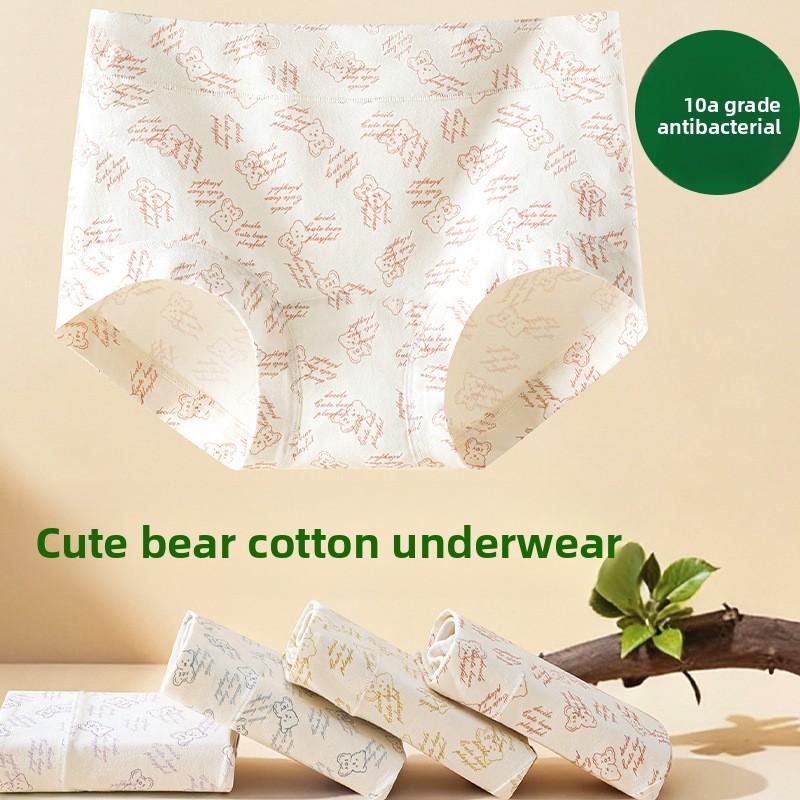 Female Autumn and Winter Sweet Bear Cotton Breathable Waist Antibacterial Extended Crotch Non Mark Triangle Briefs