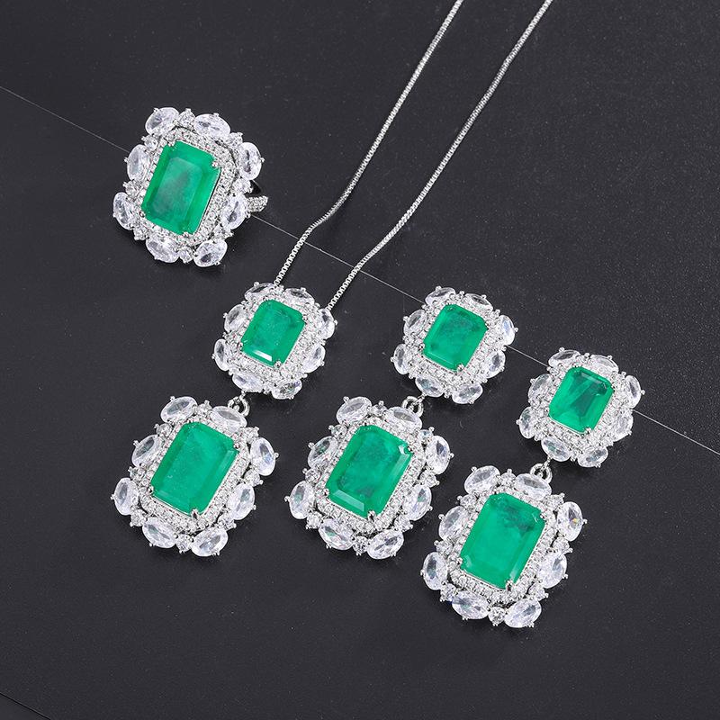 S925 Silver Needle Fashion Simulation Jewelry Accessories Set Emerald Three Piece Women