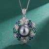 Platinum Grey Pearl Ring Tahiti Deep Sea Emerald Zircon Flower Necklace Earnail Set Jewelry Women