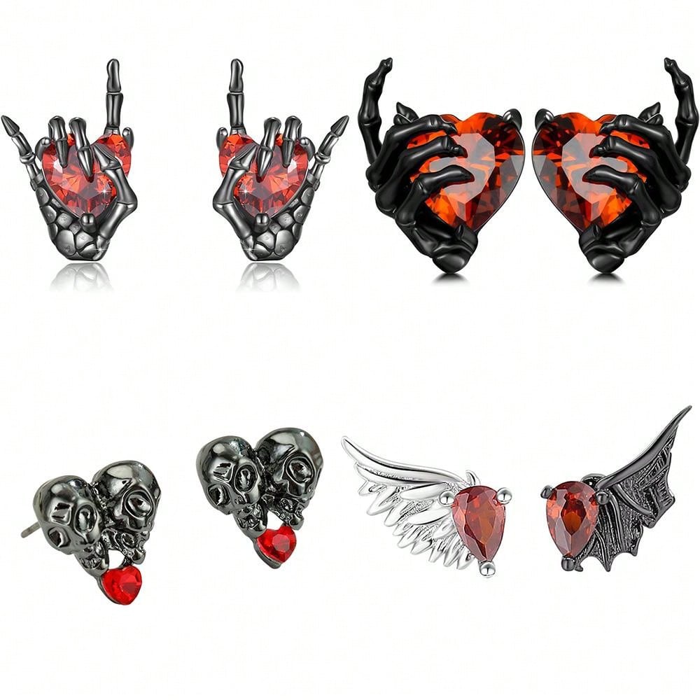 1Pc/4Pc Creative Fashion Easter Halloween Palm Love Earrings Skull Angel Wings Earrings