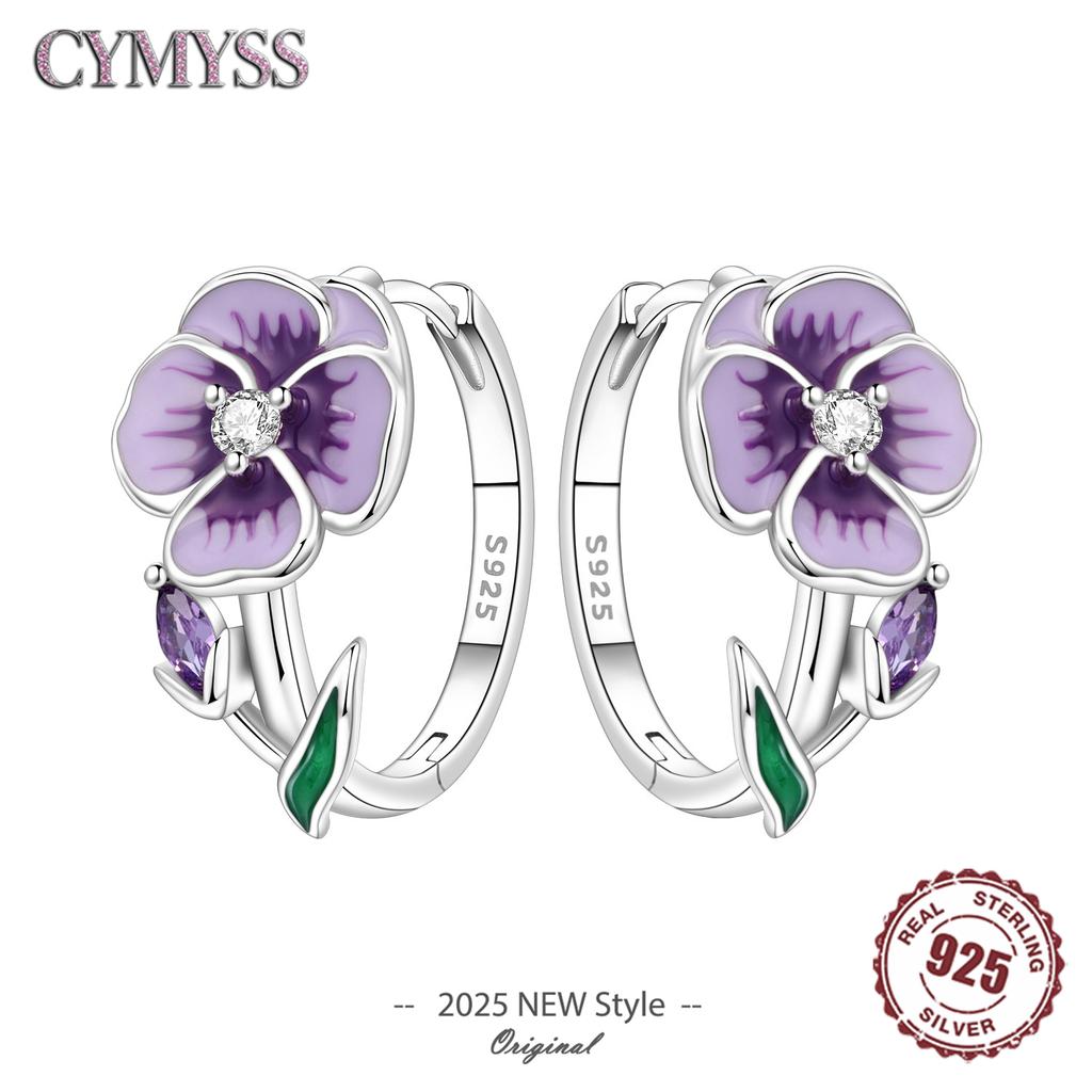 Original 925 Silver Needle Purple Violet Flowers Earrings Versatile Hoop For Women Jewelry Birthday Party Fine Gifts