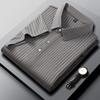 Men's Casual Fashion Striped Short Sleeved Collar Polo Shirt Breathable and Comfortable Summer Versatile T-shirt