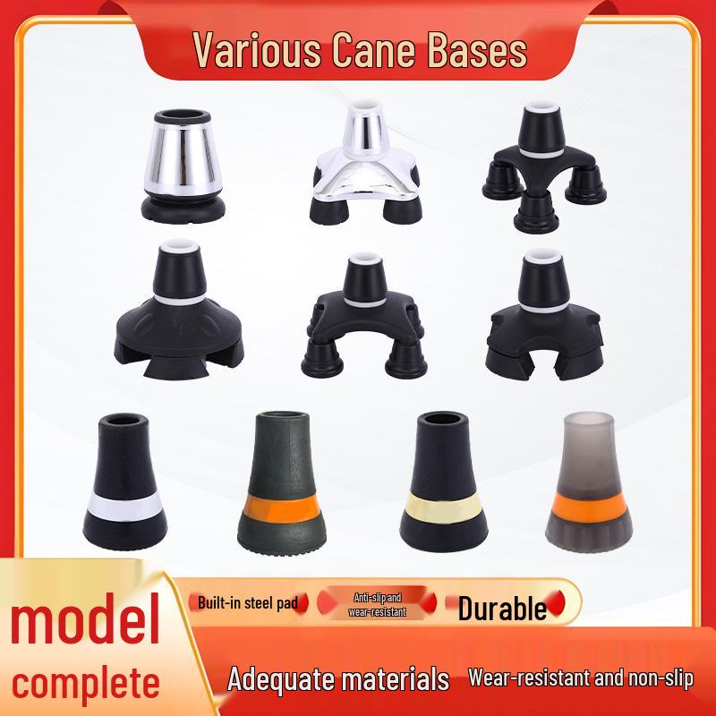 Multi-spec Anti-Slip Rubber Cane Tip for Elderly Walking Sticks - Tripod & Quadruped Foot Covers