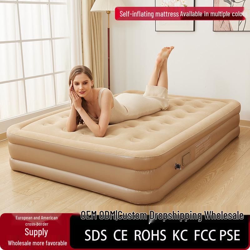 One-Key Auto-Pump Inflatable Double Mattress – Elevated, Thick, Dual-Use Flocking Bed for Indoor/Outdoor Use