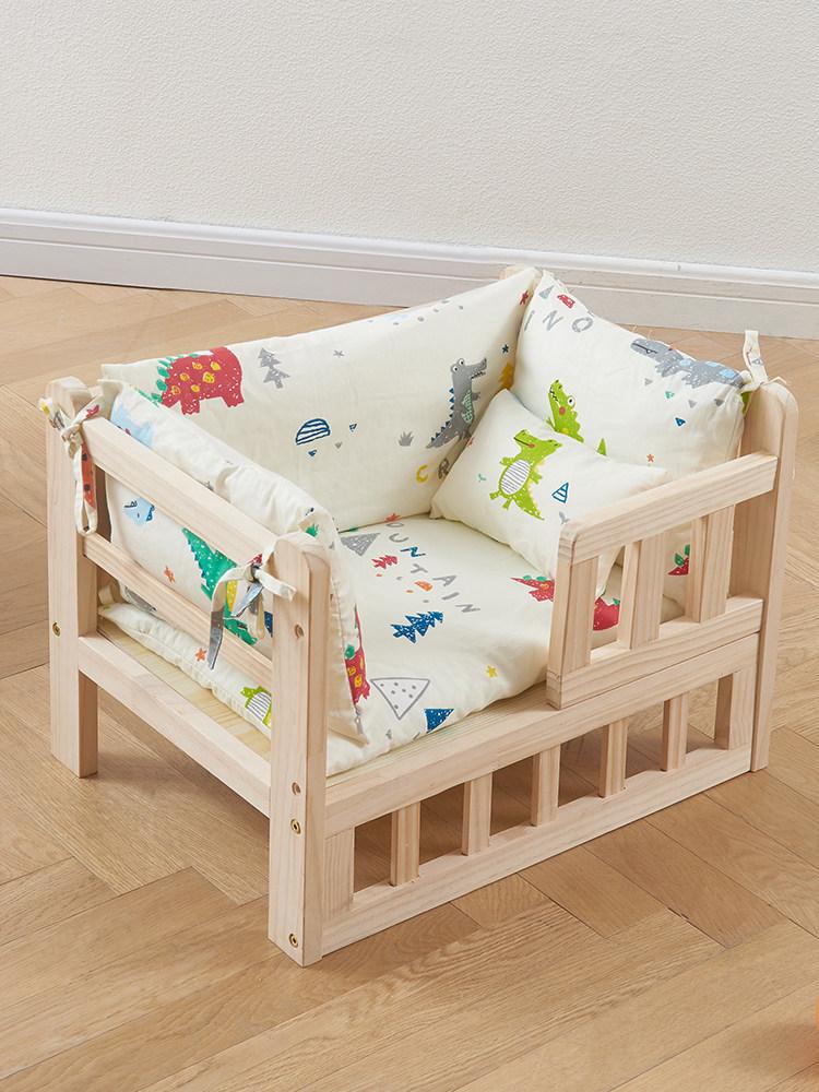 Solid Wood Elevated Pet Bed - Washable, All-Season for Small Dogs & Cats
