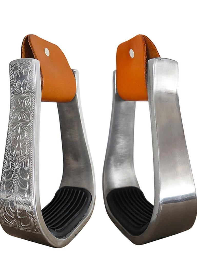 Western Aluminum Stirrup, 120mm Inner Width, Genuine Cowhide Cover, Color Box Packing