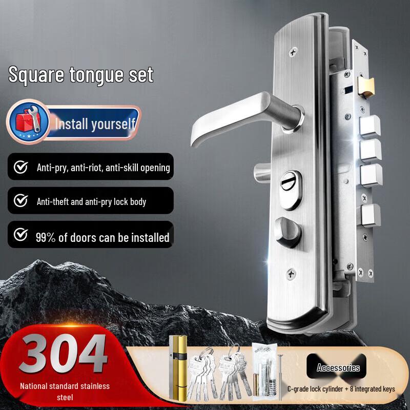 This Lenovo anti-theft door lock set features a super C-grade copper lock cylinder and a thickened panel for enhanced security. It is a traditional lever handle lock with a knob control, designed for main entrance doors, and comes with a square tongue complete set.