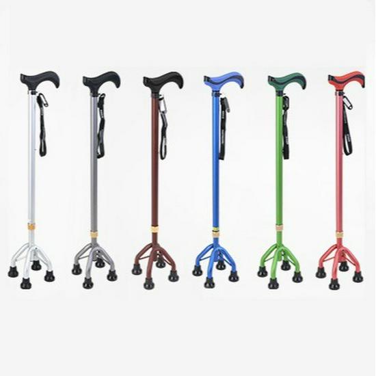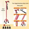 Lightweight Aluminum Alloy Four-Legged Cane with Soft Grip for Seniors - Anti-Slip, Adjustable Walking Stick.