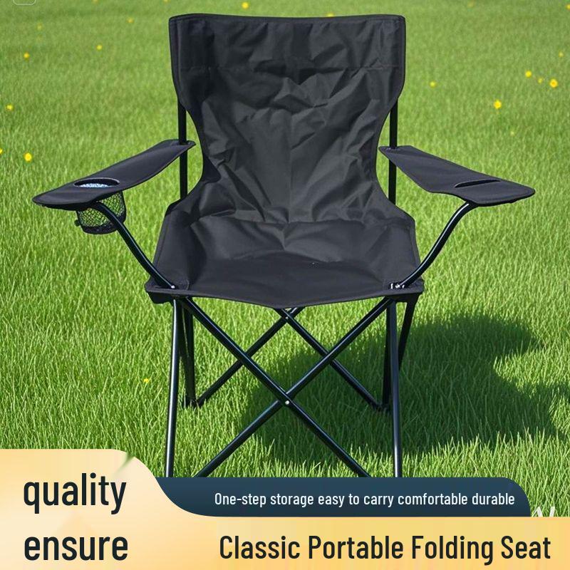 Portable Outdoor Folding Chair with Backrest and Armrests for Camping, Sketching, Fishing, and Beach Activities
