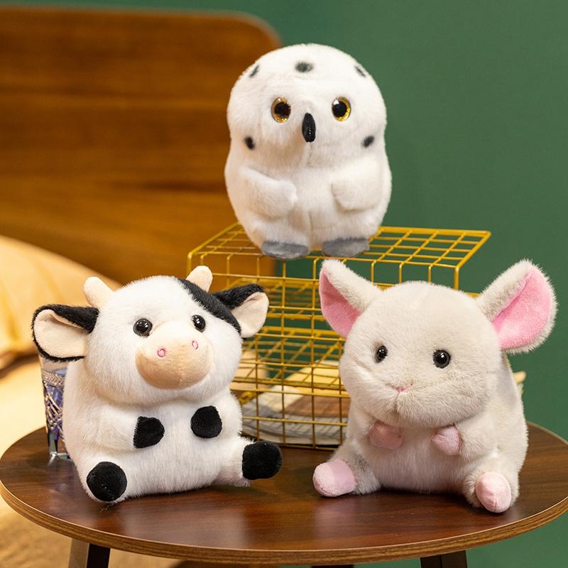 Cute Cow Plush Toy Soft Fluffy Stuffed Animal Doll Adorable Owl Chinchilla Plushies Cuddly Doll