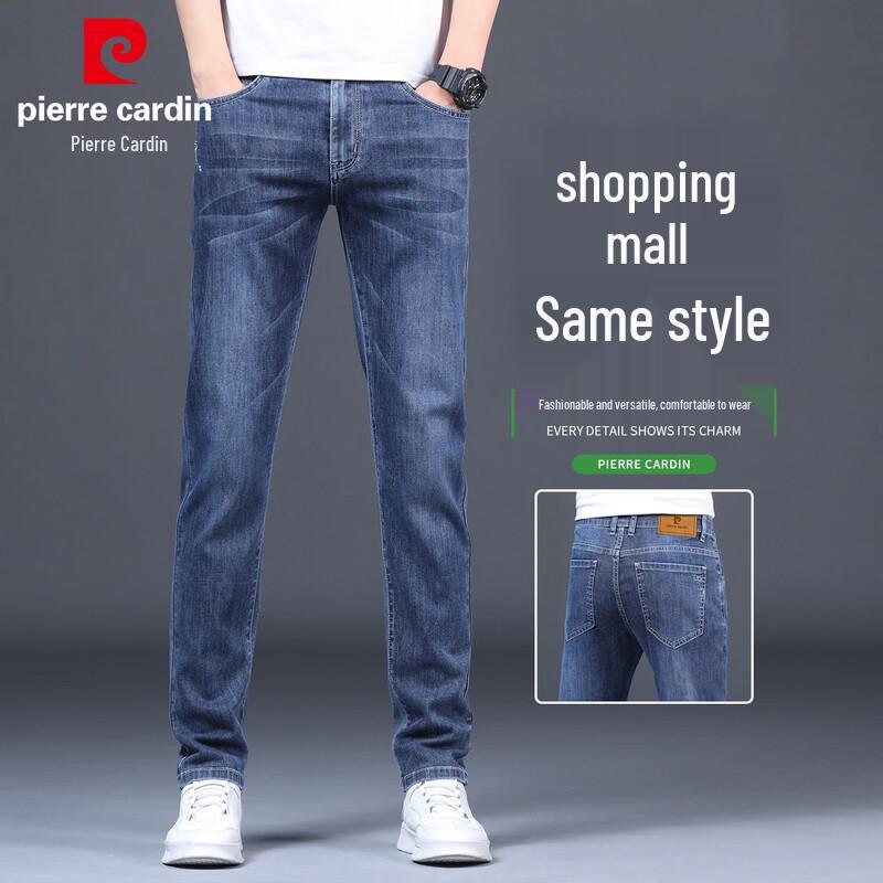 These Pierre Cardin men's high-end jeans offer a comfortable loose straight fit, crafted with elastic denim for everyday wear. Ideal for spring and autumn, they blend business casual style with practical design, featuring a zipper fly and multi-pocket details.