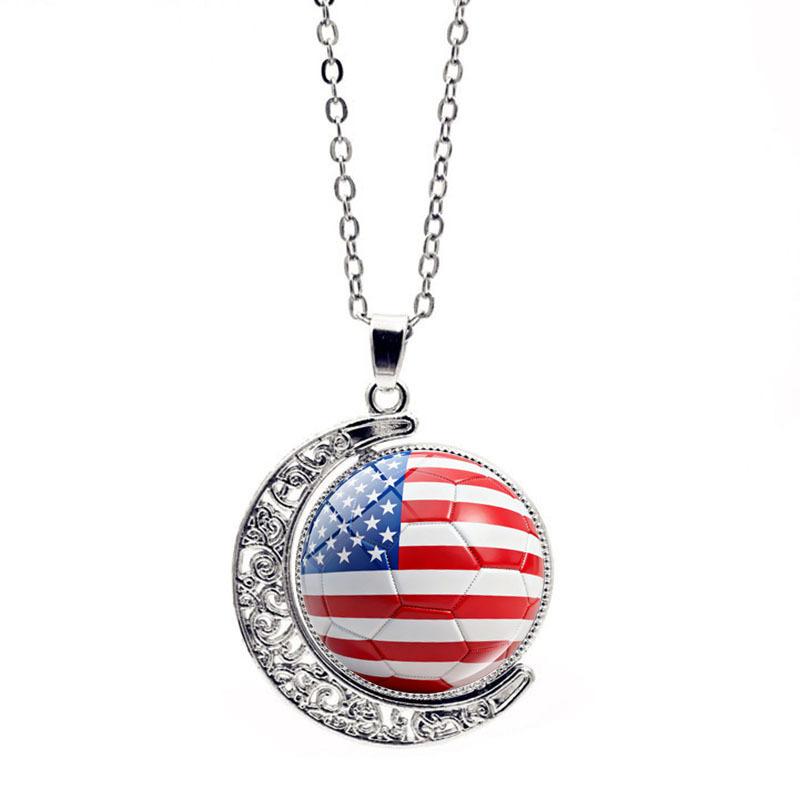 FIFA World Cup Flag Football Necklace Women's Versatile Creative Rotating Moon Pendant Sweater Chain