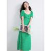 TUHUANG Mulberry Silk French Polka Dot Puff Sleeve Midi Dress