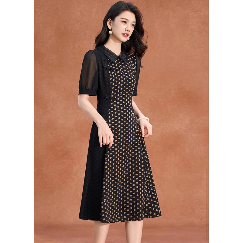 French Retro Polka Dot Lace Patchwork Midi Dress