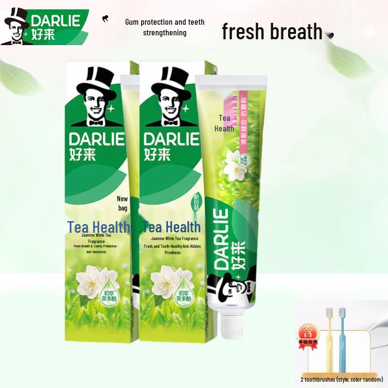Darlie Tea Care Jasmine White Tea Toothpaste (90g x 2) with 2 Toothbrushes