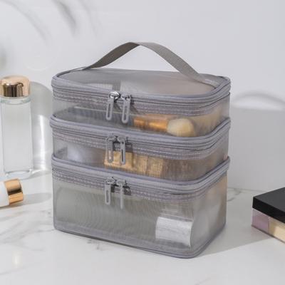 Örgü Kozmetik Çantası Çok Katmanlı Büyük Kapasiteli Görünür Fermuar Kapatma Saplı Taşınabilir Sınıflandırılmış Organizasyon Seyahat Gezisi Makyaj Saklama Çantası
