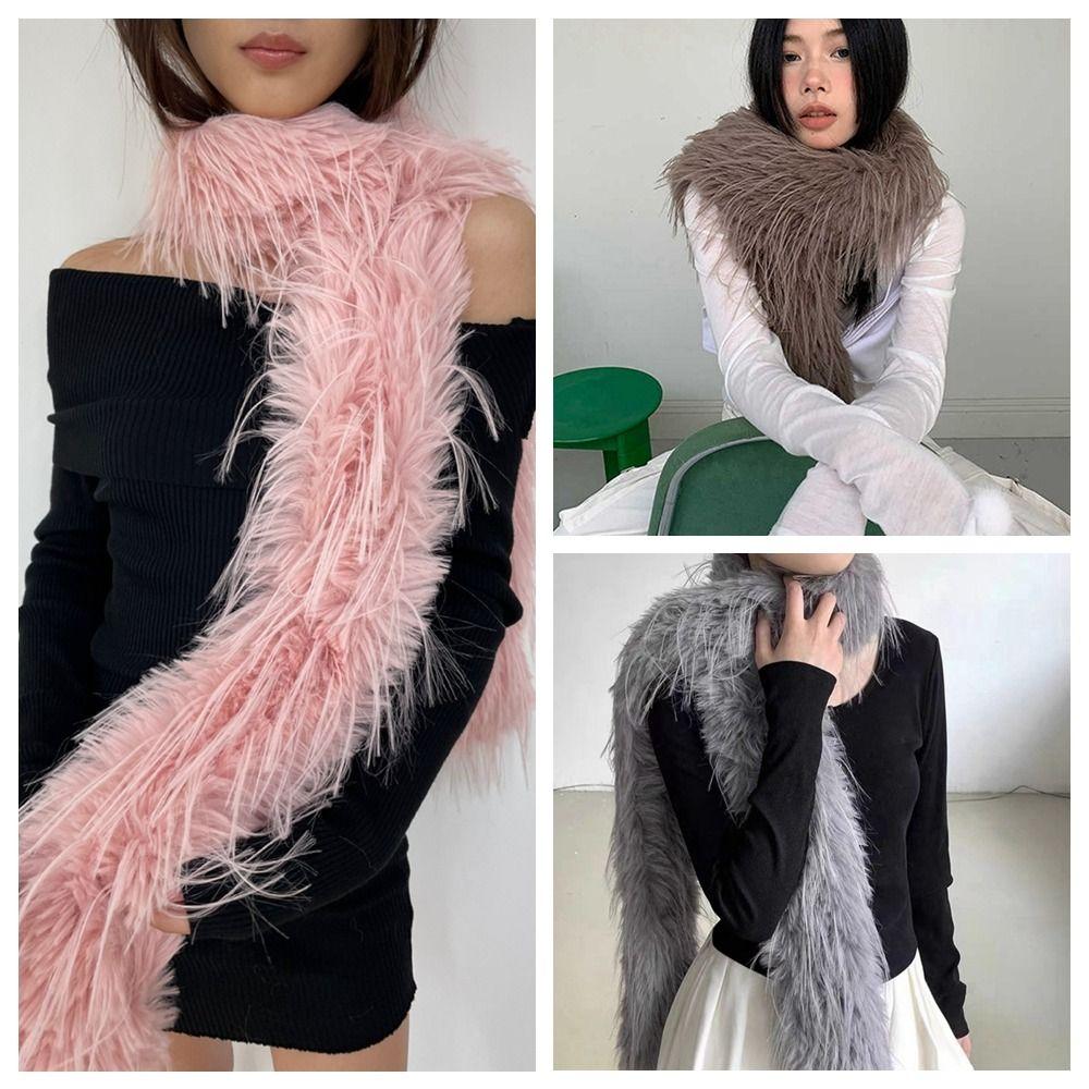 Harajuku Imitation Fur Scarf Pure Color Y2K Scarves Simple Fluffy Shawl Wrap Girl