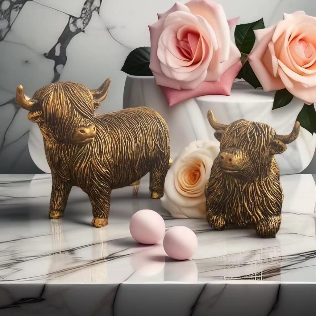 🐂 Vintage Bull Figurine Product Description 【Vintage Texture & Adorable Bull】This pair of Scottish bull figurines, based the classic "long-haired fringe" style, uses a vintage copper-gold tone to recreate a British atmosphere. Whether lounging lazily or standing , they perfectly the endearing and cuddly nature of the bull, making them a desktop accessory that combines a sense of comfort and vintage charm. 【Full of & Exquisite Craftsmanship】 Material and Craftsmanship: Hand-carved from resin with an antiqued copper finish, every strand of hair is clearly visible, the texture is delicate and three-dimensional, and the feel is warm and substantial. Design: Lying Down: The soft and adorable curled-up has an inherent sense of "lying down" and comfort, suitable for placing a bedside table or desk to convey relaxation. Standing: The and agile body, with clean lines in the horns and limbs, exudes a more lively and feel, suitable for open spaces such as entryways and bookshelves. Style Compatibility: The vintage copper-gold tone perfectly complements various home decor styles, including American , Scandinavian retro, and industrial, making it versatile and eye-catching. 【Scenarios and Uses】 Home Decor: Placed in the living room, study, bathroom, or car center console, it injects a natural and adorable atmosphere into the space. Ideal Gift: As a birthday gift, housewarming gift, or a collectible, the unique cow image is both recognizable and full of warmth. Collectible and Playful: A pair of ornaments can be displayed together or individually, serving as both decoration and a fun desktop companion. 【Key Highlights】 Recreates the long hair and endearing appearance of the Scottish cow, combining cuteness and quality. The distressed copper finish has a built-in vintage filter, growing more appealing with time. Two poses are available to meet the decorative needs of different scenarios, easily brightening up any corner of your life. Includes: 1 ornament