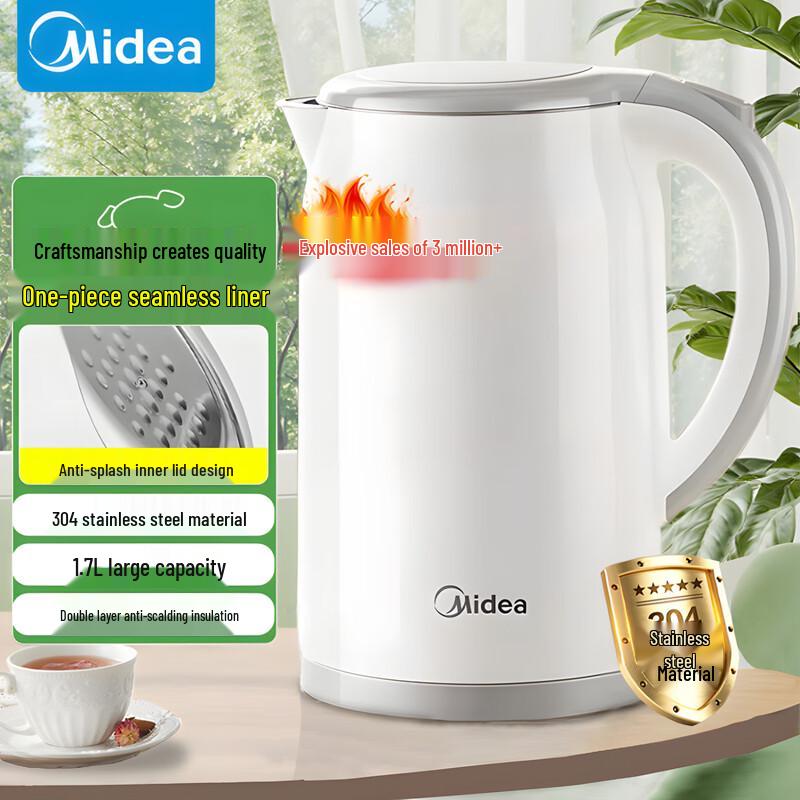 Midea 1.7L Stainless Steel Electric Kettle with Rapid Boil & Anti-Scald