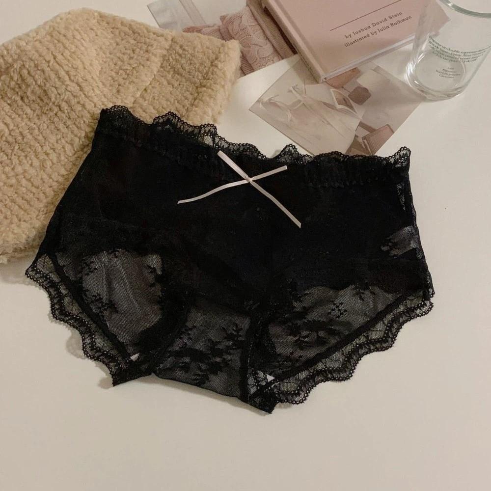 Mid Waist Lace Panties Briefs Mesh Lace Briefs Breathable Underwear for Women Female Lingerie