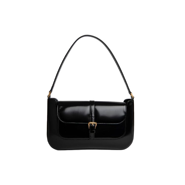 By Far Miranda Solid Color Vintage Flap Closure Leather Underarm Bag Baguette Handheld Shoulder Bag Women bags Black 19PFMDASBLWMED