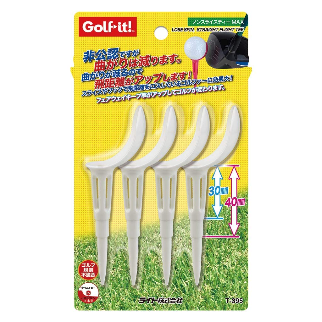 While not permitted for official competitions, it reduces slice or hook. This reduction in slice or hook increases distance. Tee size: 100mm total length, stepped tee height of 30/40mm.