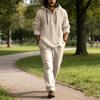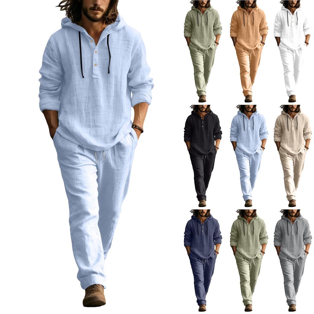 Men's Linen Casual Set - Button Shirt Elastic Waist Drawstring Loose-Fit Pants Comfortable Two-Piece Set