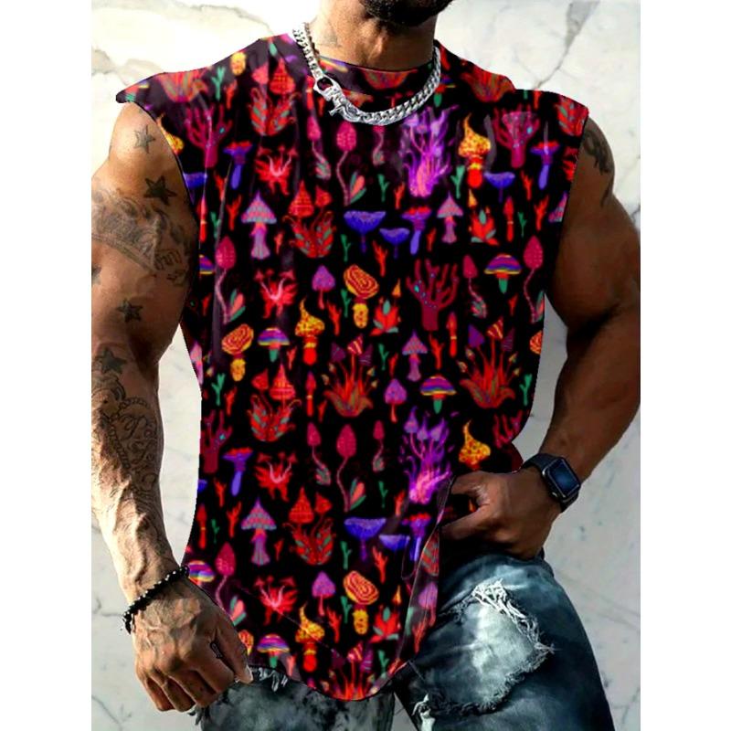 Men's sleeveless T-shirt featuring a neon glowing mushroom leaf design