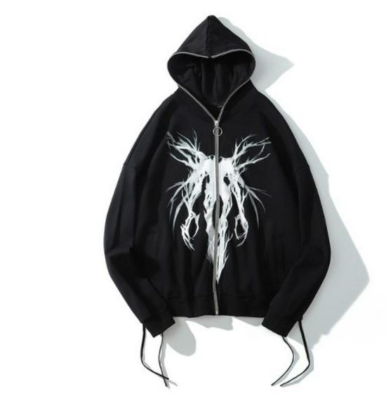 Elevate your autumn wardrobe with this unique unisex hoodie jacket, featuring a bold and stylish design that echoes the vibrant Y2K era. This jacket boasts a loose fit for ultimate comfort and freedom of movement, making it perfect for layering during cooler months. With its long sleeves and a practical hooded neckline, it offers both warmth and a touch of edgy flair. The jacket is crafted from high-quality viscose material, ensuring a soft feel and durability. The addition of devil wings on the back adds a playful, rebellious touch, making this piece a standout addition to any fashion-forward individual's collection. Perfect for those looking to make a statement while staying cozy.
