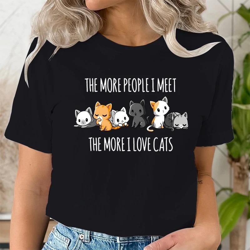 Fashionable Summer Casual Women's T-shirt Cute Cat and University Women Clothes Aesthetic Clothes