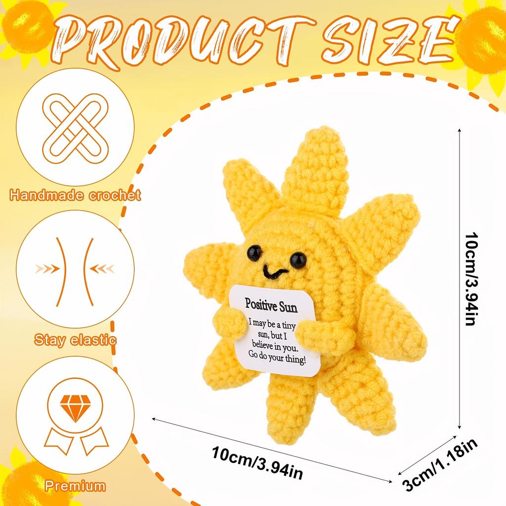 1/2pcs Positive Sun Crochet Dolls with Inspirational Cards-Handmade Yellow Knitted Suns for New Year, Birthday Party Decorations