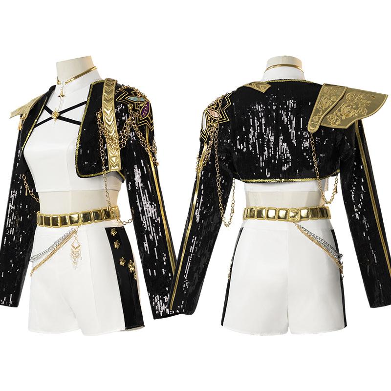 K-Pop Witch Hunter Cos Suit Rumi Mirazoe Black Gold Stage Costume Singing Costume Two-Dimensional Cos Suit