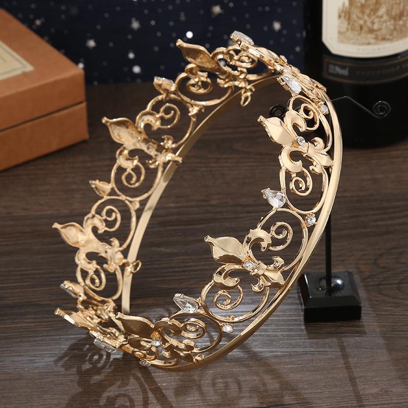 Boys Crown Alloy Rhinestone Hair Crown Bridal Round Crown Black Wedding Crown Performance Party Headwear 2026