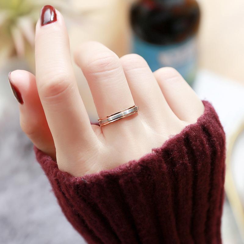 Black Titanium Steel Couple Ring with Gold Trim - Trendy, Fashionable, and Simple Design for Women