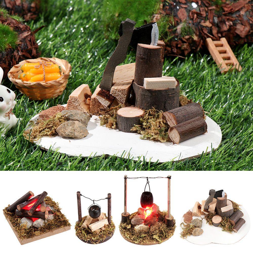 1:12 Scale Micro Landscape Accessories Fairy Garden Decor Villa Scene Model Dollhouse Bonfire Miniatures Campfire