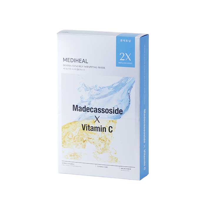 Restore a clear and radiant complexion with the MEDIHEAL Derma Synergy Wrapping Mask Blemish Toning. Formulated with Madecassoside and Vitamin C, this advanced sheet mask helps brighten dull skin, reduce the appearance of blemish marks, and improve overall skin tone. The wrapping sheet technology adheres closely to the skin to deliver active ingredients effectively. Perfect for tired, uneven skin needing intensive brightening care.
