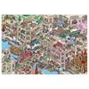 -Intricate Detail & Storytelling: Boasts dense, fine line art with countless small characters, vintage vehicles, storefronts, and natural elements, creating rich narrative layers for decorative storytelling and exploration.