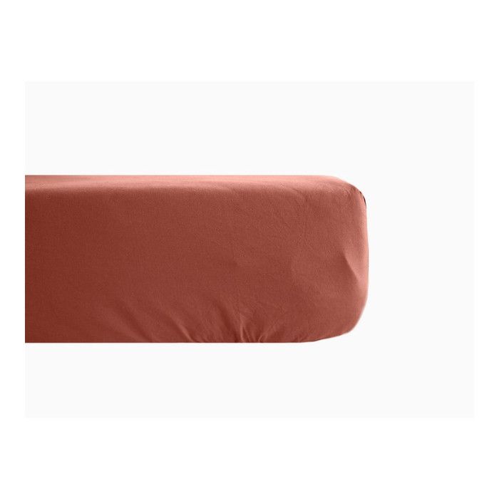 Drap housse Palace pur coton teint lavé 63 fils/cm² Vent du sud - Palace Peche - 160 x 200 cm bonnet de 35 cm