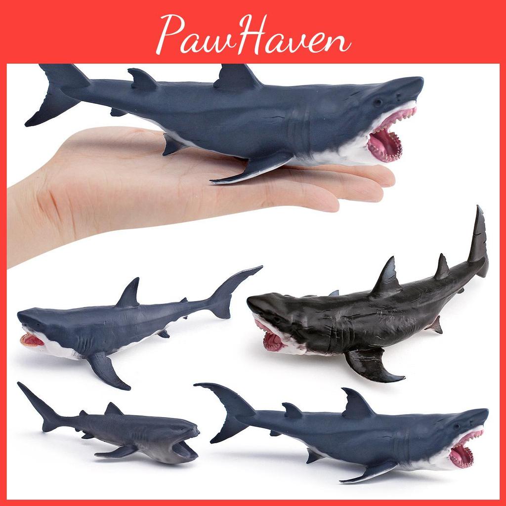 This children's ocean animal shark model offers a realistic depiction of white and open-mouth sharks, supporting educational play and ocean-themed decor. Made of durable PVC, and measures in various detailed sizes. Ideal for classroom displays or marine biology projects, it resists damage and can be wiped clean with a damp cloth.