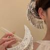 Silver Crescent Shape Tassel Hairpin Metal Hanfu Hair Clip Retro Ethnic Style Headwear for Women