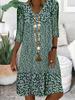 Kadınlar için Yaz Yeni Baskılı Orta Kollu V Yaka Orta Uzunlukta Elbise