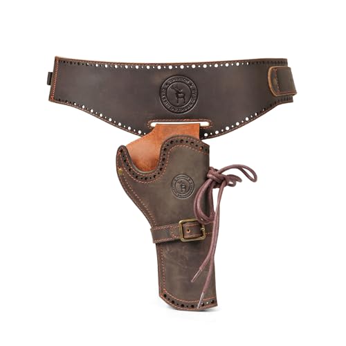 TOURBON Pistol Holster, Genuine Leather, with Bullet Belt, Revolver Gun Holster, Revolver Gun Belt