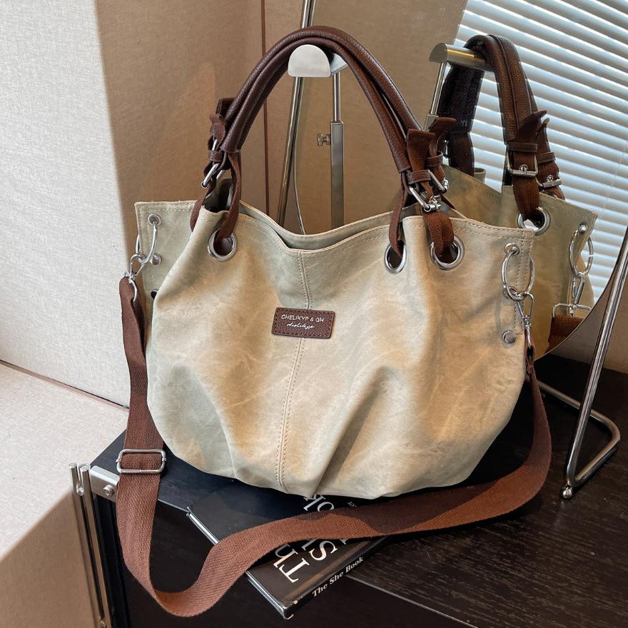 American retro casual handbag large capacity pleated personalized shoulder bag street tide commuter women messenger bag